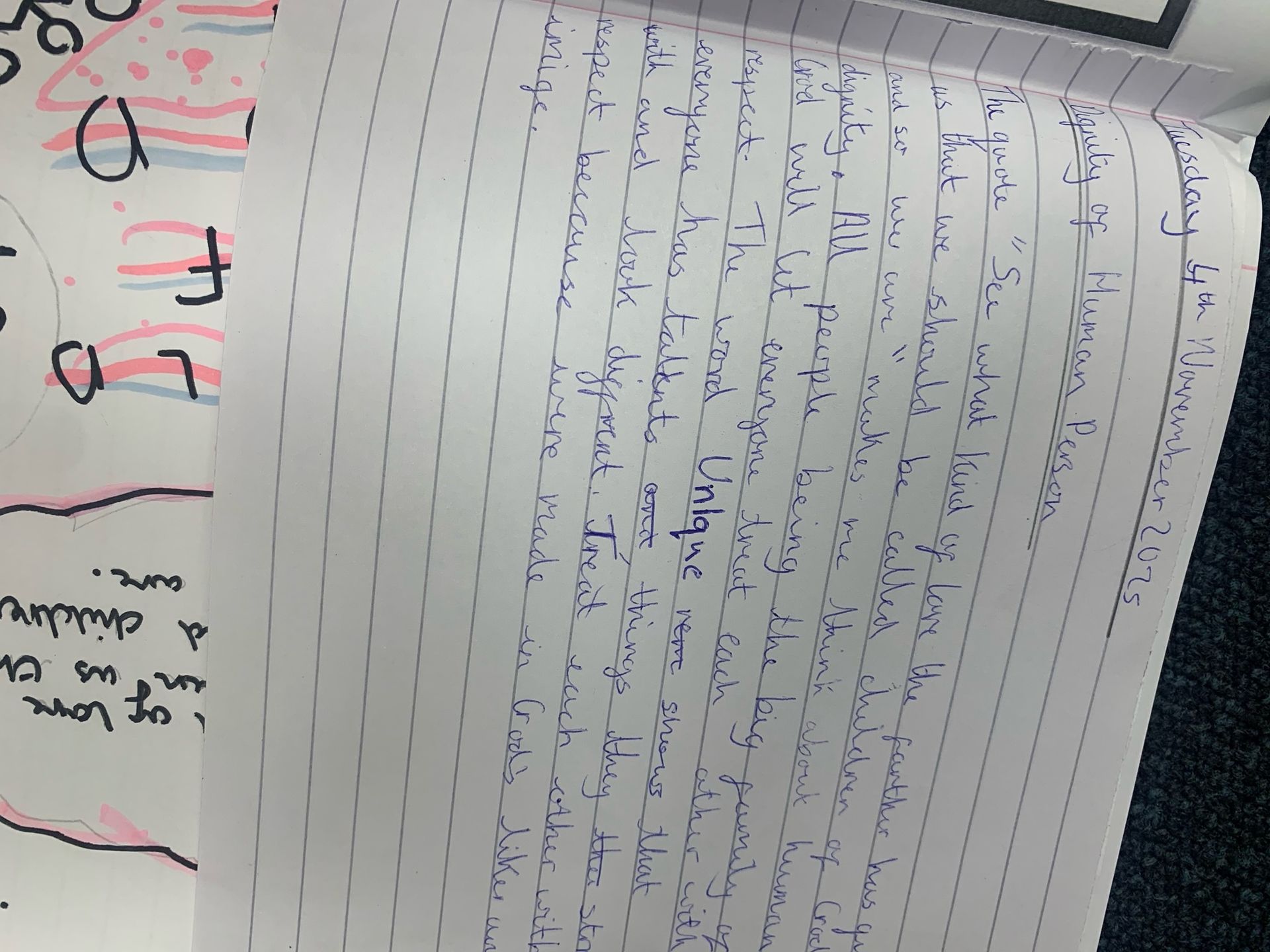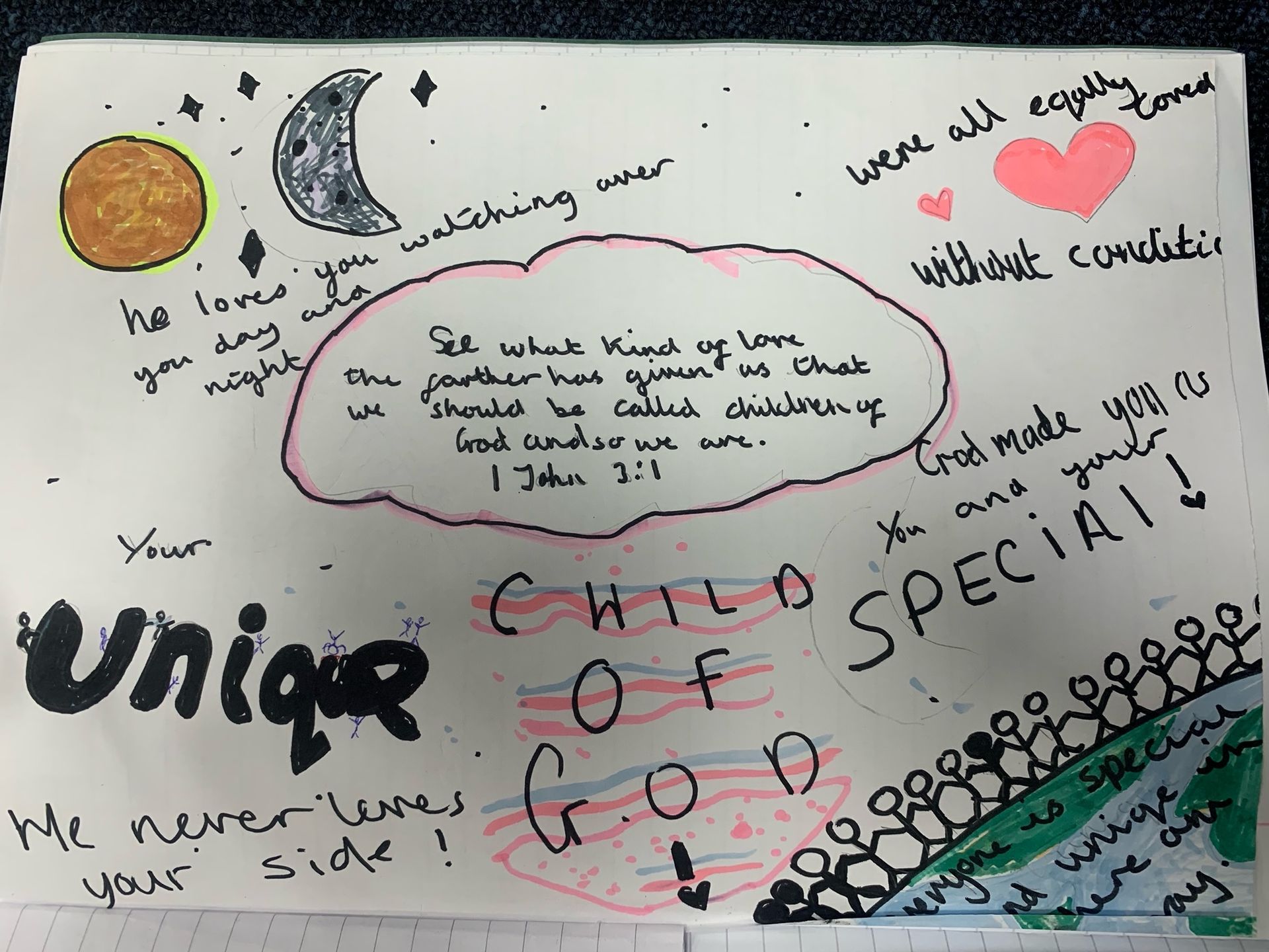 The dignity of the human person is the idea that every person has inherent worth and value, simply because they are human. This means that everyone deserves respect, fairness, and care, no matter their age, background, abilities, or circumstances. It is a core principle in Catholic social teaching, reminding us that every life is sacred and that we are called to treat others with love and compassion.