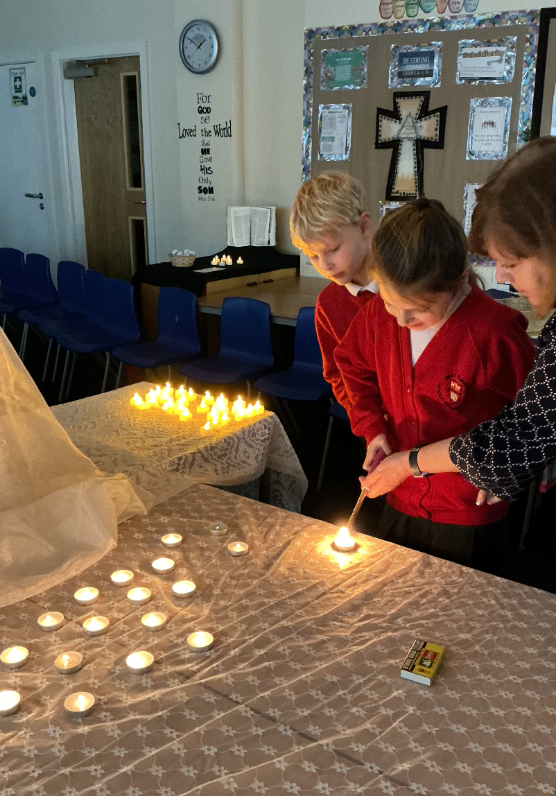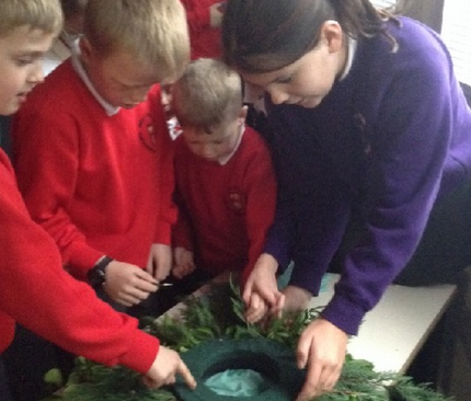 The GIFT Team welcomed children from all year groups. Together, they carefully added foliage to the wreath while reflecting on its beautiful symbolism. One child, Lily, shared a wonderful thought: “It's Like the circle, God’s love is never ending.”