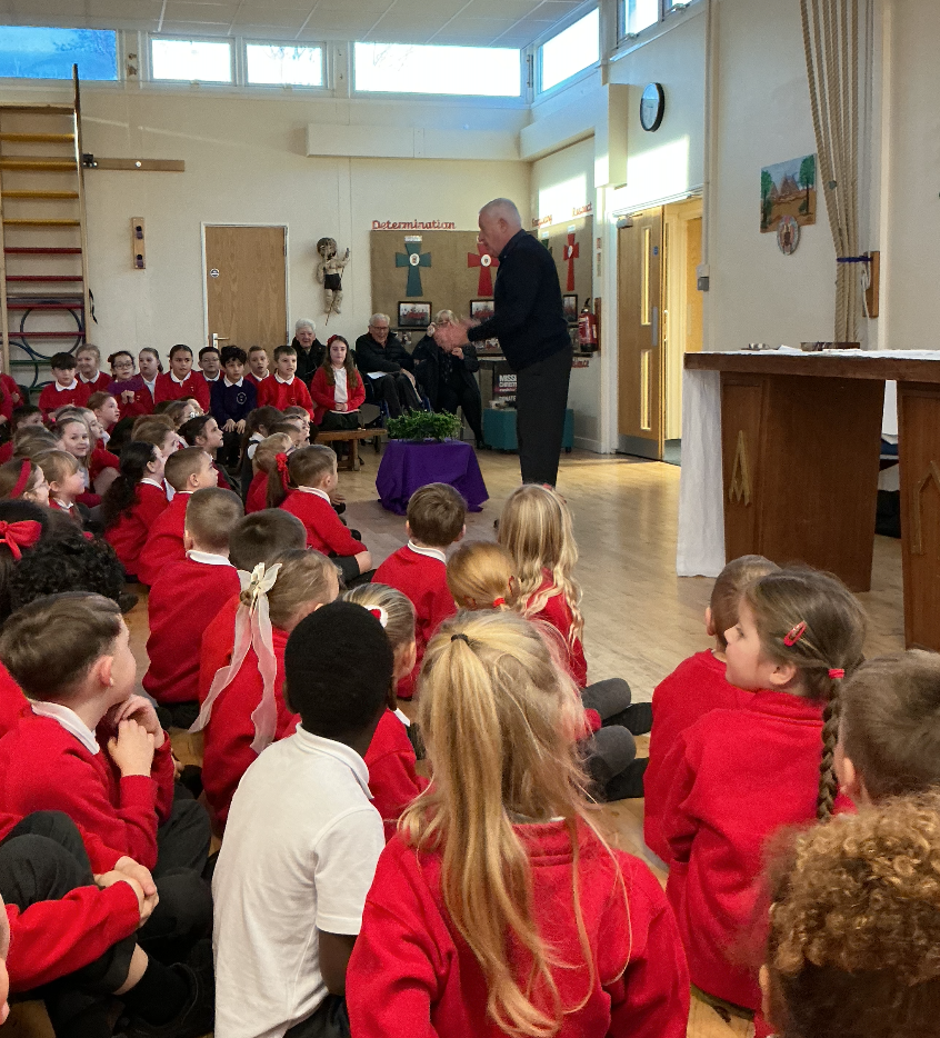 Father Kevin led a solemn and meaningful Ash Wednesday Mass in the school hall, marking the beginning of Lent. The children participated reverently, listening to the Gospel and joining in prayer and reflection. Each child received an ash cross on their forehead, a symbol of repentance and a reminder to turn their hearts back to God. As the ashes were placed, Father Kevin said,